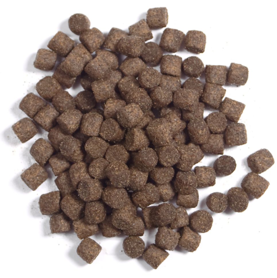 | Geflügelfleischmehl, Erbsenprotein, Fischmehl, Triticale, Fischöl, Wizennachmehl, Geflügelblutmehl, Federmehl hydrollis., Erbsenmehl, Weizenquellstärke, Öle & Fette: (SH108=Gemisch aus Glyceriden von 8 kurz-& mittelkettigen Fettsäuren, Glycerin), Hefen: (zellwandreich, mit natürlichem ß-Glucan) | ||
